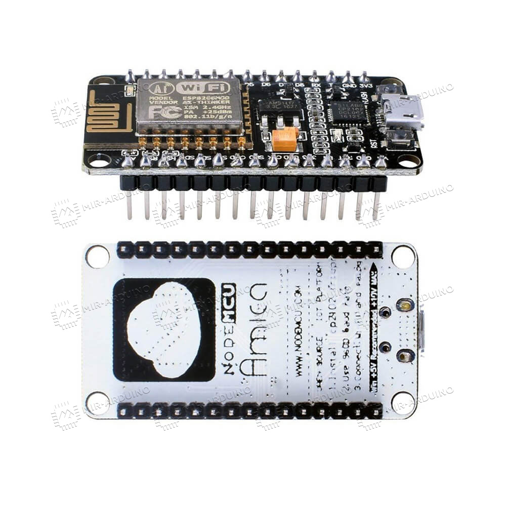 Контроллер Wi-Fi NodeMCU V3 (ESP8266, CP2102) предназначен для создания устройств интернета вещей. Он совмещает в себе функции микроконтроллера и модуля Wi-Fi. Благодаря интерфейсу USB устройство управления сетью можно быстро подключить к компьютеру, через него же и происходит питание. На корпусе по бокам расположены стандартные разъемы с шагом 2,54 мм. Всего находится 11 портов ввода и вывода стандартного назначения, включая ШИМ, I2C, SPI, UART. Микроконтроллер поддерживает встроенную прошивку NodeMCU, но при необходимости можно самостоятельно перепрошить его. Для записи кода доступно 64 КБ памяти, полный объем ОЗУ 96 КБ.